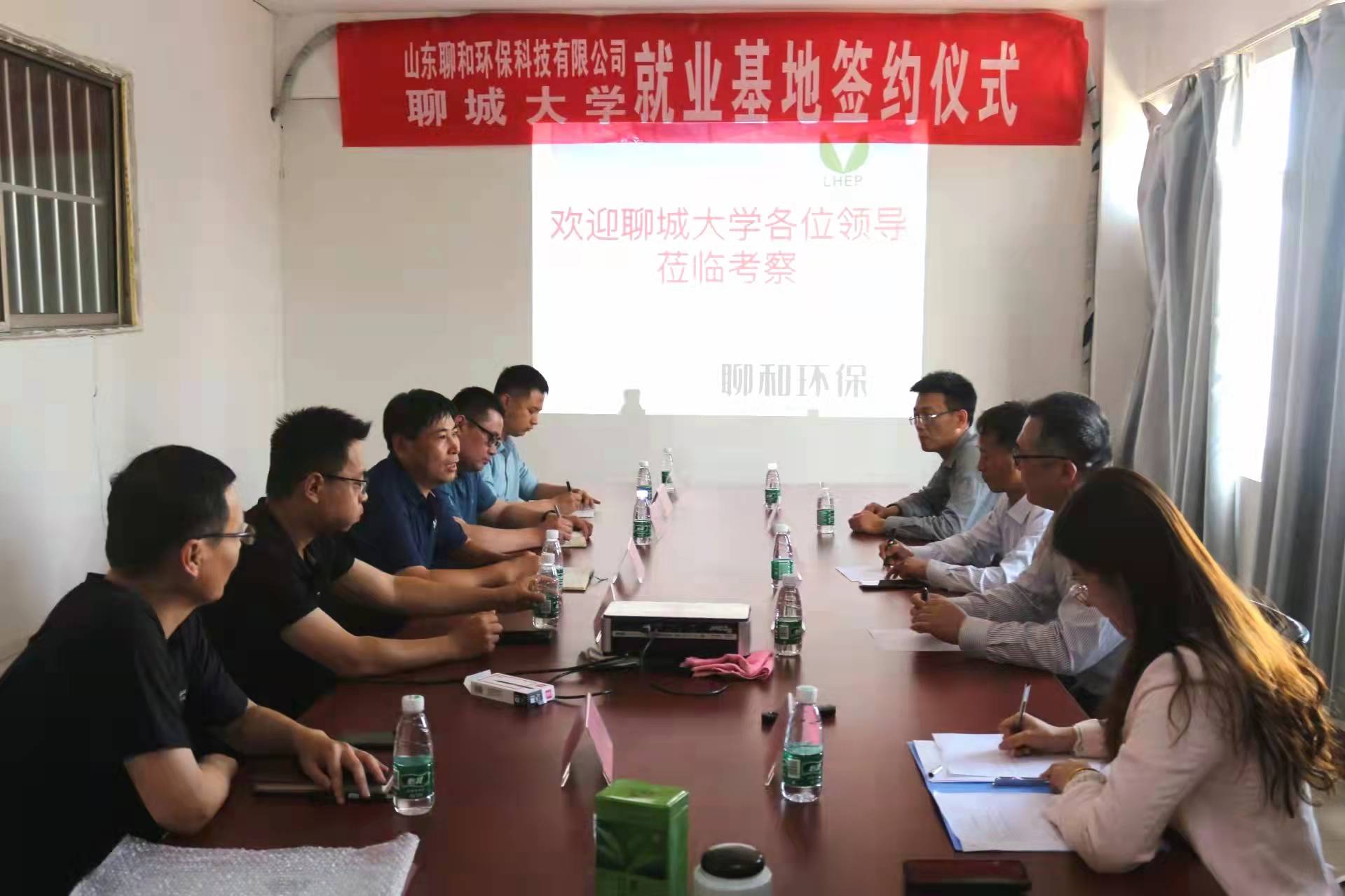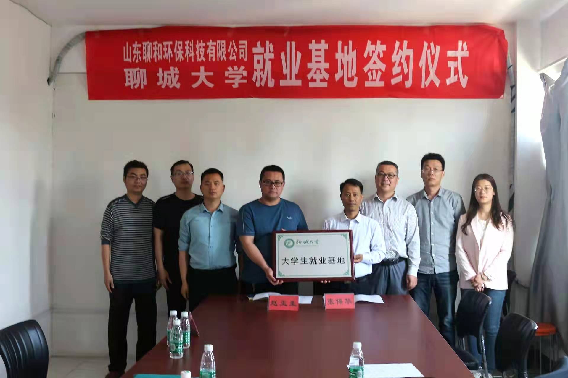 2022年5月17日下午,聊城大學(xué)地理與環(huán)境學(xué)院院長(zhǎng)張保華,黨委副書記、副院長(zhǎng)張福善,副教授解修平及輔導(dǎo)員崔邢前往山東聊和環(huán)??萍加邢薰?,參加我公司與聊城大學(xué)就業(yè)基地的簽約掛牌儀式。公司董事長(zhǎng)王振健、總經(jīng)理趙玉生、法人王振領(lǐng)、企業(yè)掛職技術(shù)總監(jiān)李聰、行政部部長(zhǎng)吳志杰出席此次活動(dòng)。